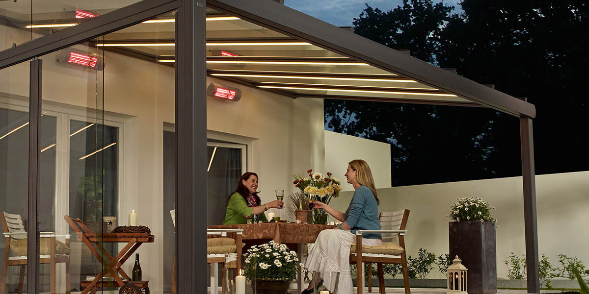 Ein großer Vorteil der Terrassendächer von Lewens ist die Flexibilität und die große Auswahl an zusätzlichem Zubehör. Das Lewens Terrassendach kann beliebig und zeitlich unabhängig mit Glas- und Schiebeelementen ergänzt werden. Im Programm sind auch Festelemente aus Glas oder Sichtschutzelemente kombiniert aus Glas und Aluminium, die ideal vor Wind und Wetter schützen. Integrierte LED-Lichtelemente lassen sich ebenso wie dimmbare Lichtschienen professionell integrieren.